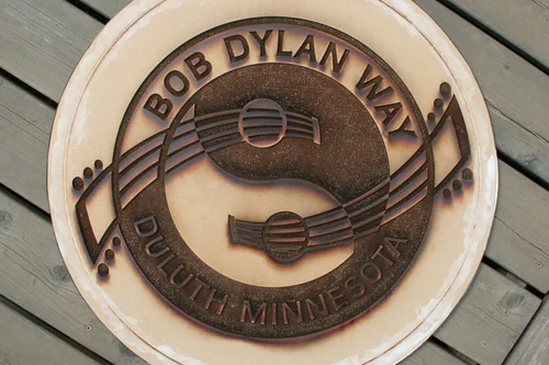 In 2010, the Duluth Public Arts Commission selected two commemorative manhole cover designs to be placed on Bob Dylan Way. The Yin Yang Guitars manhole cover was designed by Minnesota artist, Marc Zapchenk.